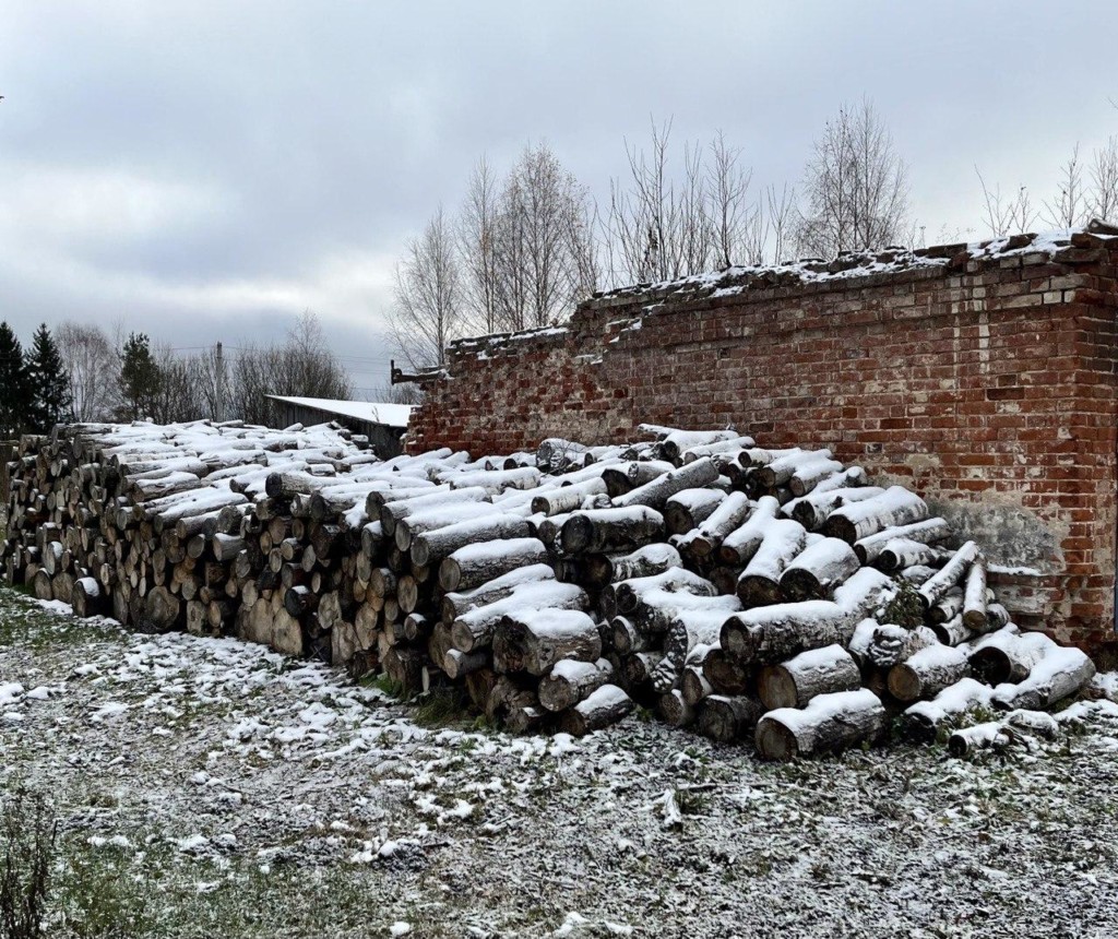 Отправили обратно в Галич. Вокруг никаких селений, по пути встретилось только пару машин — полное безлюдье. И вдруг на пути появляется полуразрушенный храм — это наш 14-й объект из разряда незапланированных: Богорождественский храм урочище Котёло. Ехали по плохой дороге из Буя в Галич и проезжали мимо этого плохо сохранившегося храма. Домов вокруг него теперь нет вообще, ни жилых, ни нежилых. Фасад закрыт баннерами с иконой и текстом.